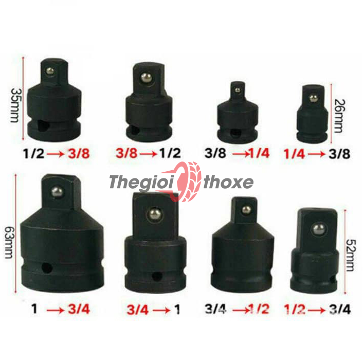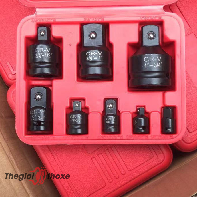 Bộ chuyển đổi đầu khẩu 8 món giúp người thợ sửa chữa dễ dàng chuyển đổi các kích thước khẩu khác nhau, giúp cho việc vặn bu lông, đai ốc được trở nên dễ dàng và thuận tiện hơn.