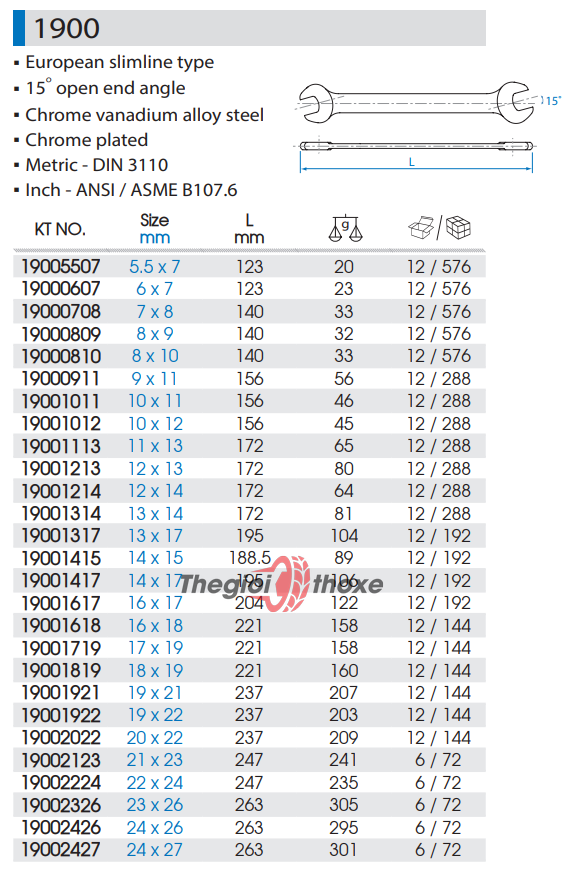 Bộ cờ lê 2 đầu miệng gồm có 12 chi tiết: 6X7; 8X9; 10X11; 12X13; 14X15; 16X17; 18X19; 20X22; 21X23; 24X27; 25X28; 30X32 nên có thể vặn siết nhiều loại bu lông, đinh vít với các kích thước khác nhau.