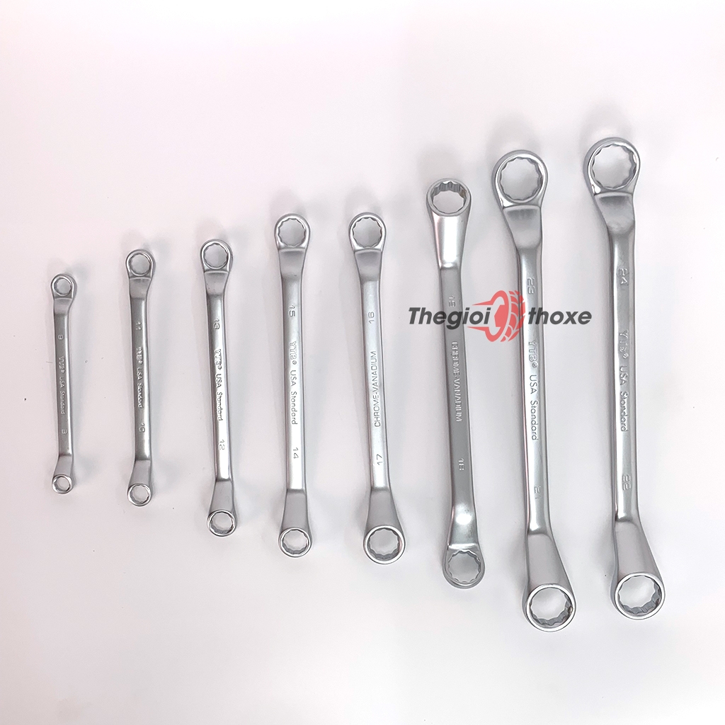 Bộ cờ lê đầu tròng bao gồm 8 cây với các kích thước khác nhau, được chế tạo bằng thép không gỉ, cao cấp, có độ cứng và chịu lực cao. Bên cạnh đó, mỗi cây cờ lê tròng đều được phủ 1 lớp xi cao cấp chống gỉ sét, có độ mờ rất bắt mắt.