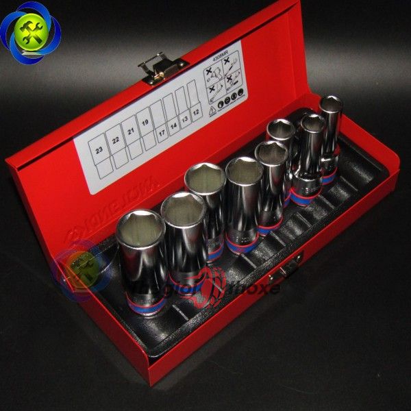 - Bao gồm 8 đầu tuýp với kích thước từ 12, 13, 14, 17, 19, 21, 22 cho đến 23mm.