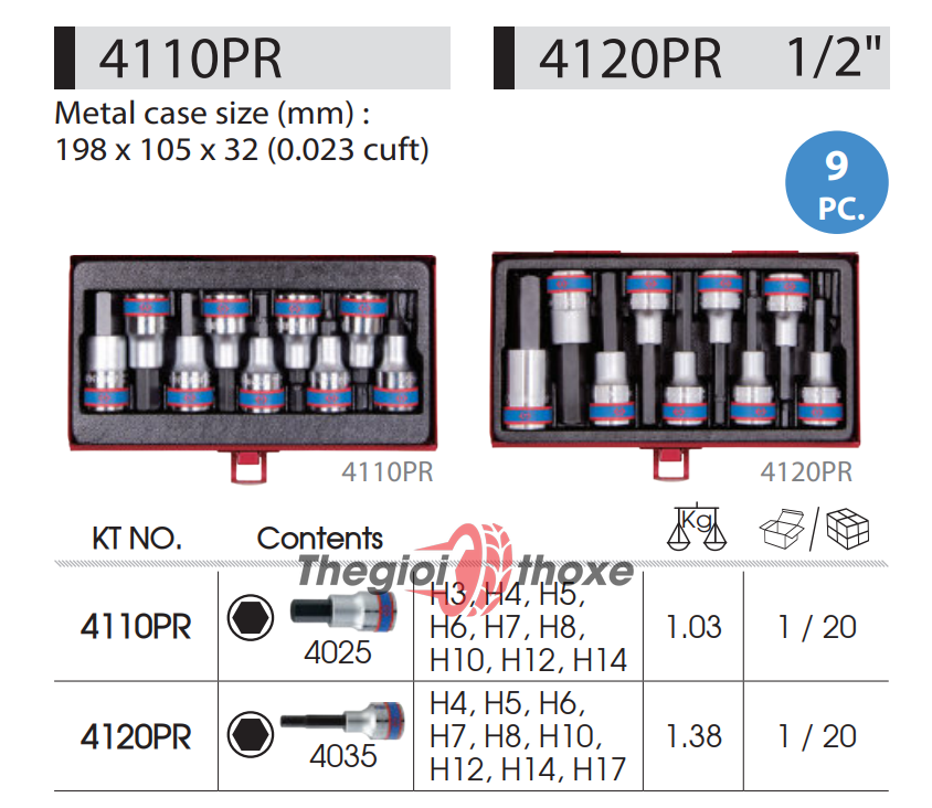 Mang đến sự tiện lợi cho các nhân viên sửa chữa và lắp đặt các thiết bị, vật dụng cơ khí, công nghiệp...Bộ đầu khẩu mũi lục giác 1/2 kingtony 4120PR là một bộ dụng cụ đầu bắn lục giác đầy tiện lợi và không thể thiếu trong tủ dụng cụ của các nhân viên làm việc chuyên ngành này.