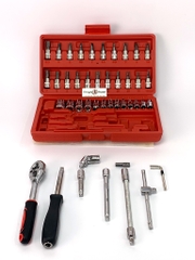 Bộ dụng cụ sửa xe mini 46 chi tiết đáp ứng đầy đủ cho công việc sửa chữa của thợ xe. Bạn có thể sử dụng trong sửa chữa ô tô, xe máy hay xe đạp vô cùng tiện lợi.