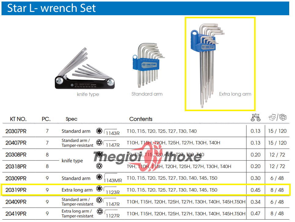 Trên thị trường hiện nay có rất nhiều dòng sản phẩm bộ lục giác đến từ nhiều thương hiệu khác nhau những nổi tiếng nhất phải kể tới thương hiệu Kingtony và dòng sản phẩm bộ lục giác bông Kingtony 20319PR.
