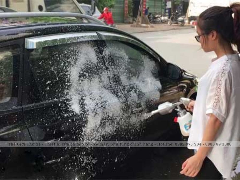 Sử dụng bình bọt tuyết chuyên nghiệp rửa xe ô tô
