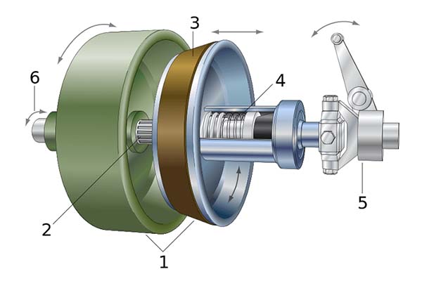 - Lực ma sát được tạo ra bởi các búa ba càng chạm vào chuông nồi trước. Khi ly hợp được thả ra, trạng thái ly lúc này không truyền lực ra bánh xe sau.