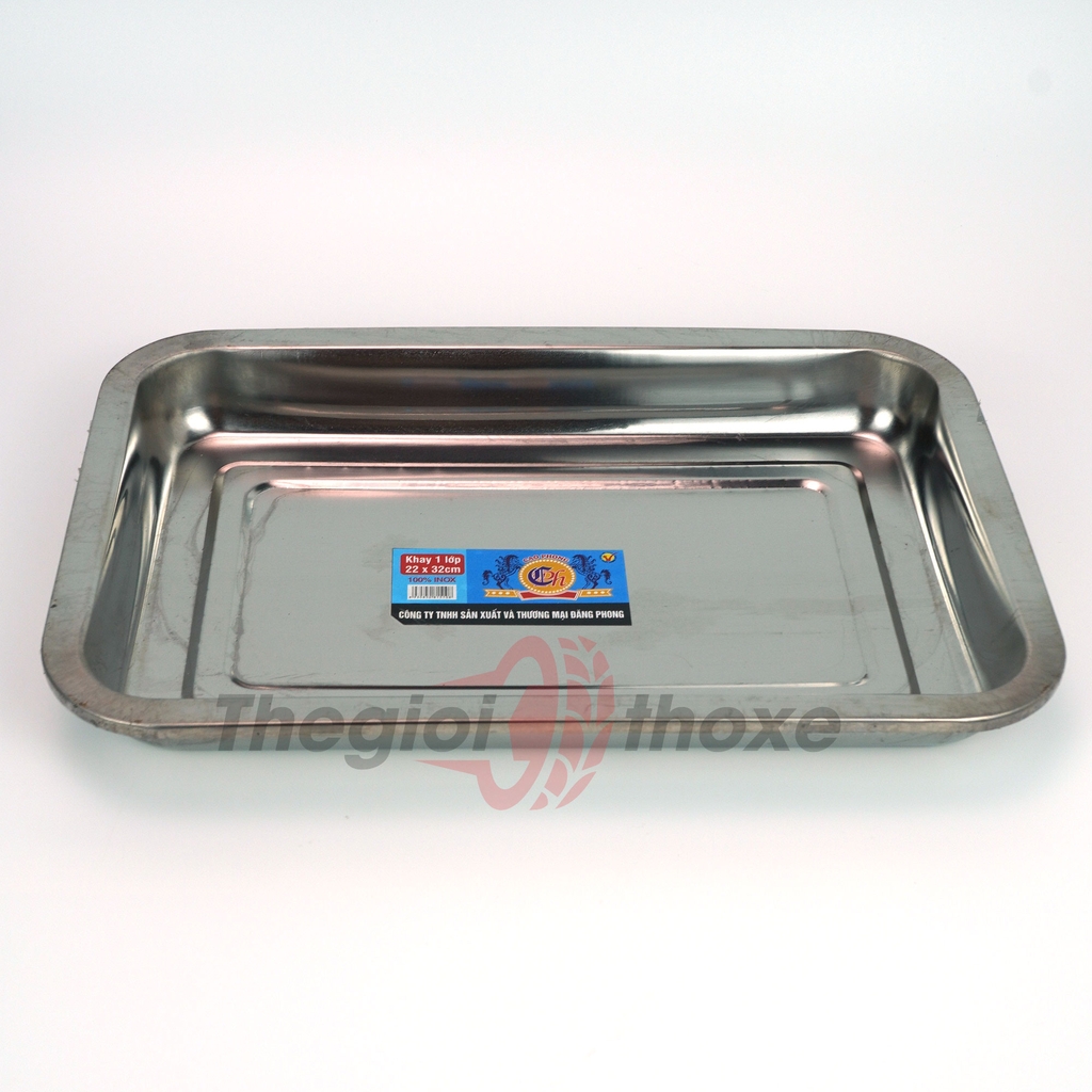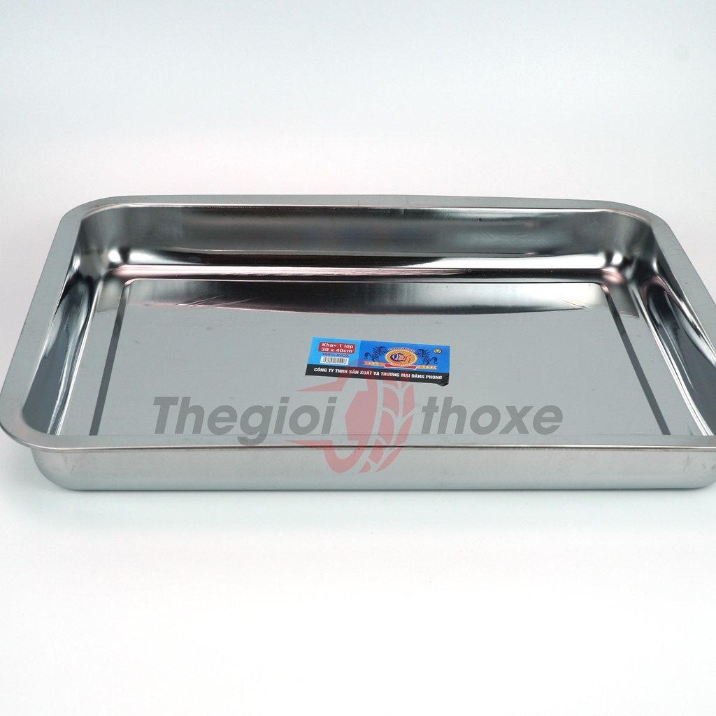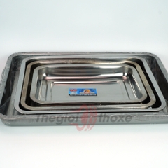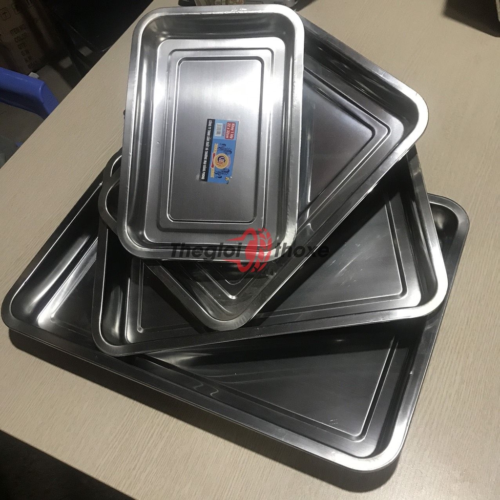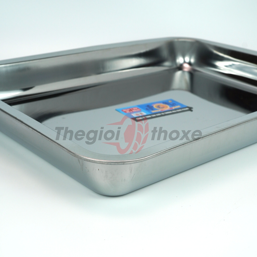 Khay đựng phụ tùng inox được chia làm 4 loại kích thước lần lượt là: 22x32x3.6 (cm); 27x36x3.6 (cm); 30x40x4.4 (cm); 35x50x4.7 (cm)