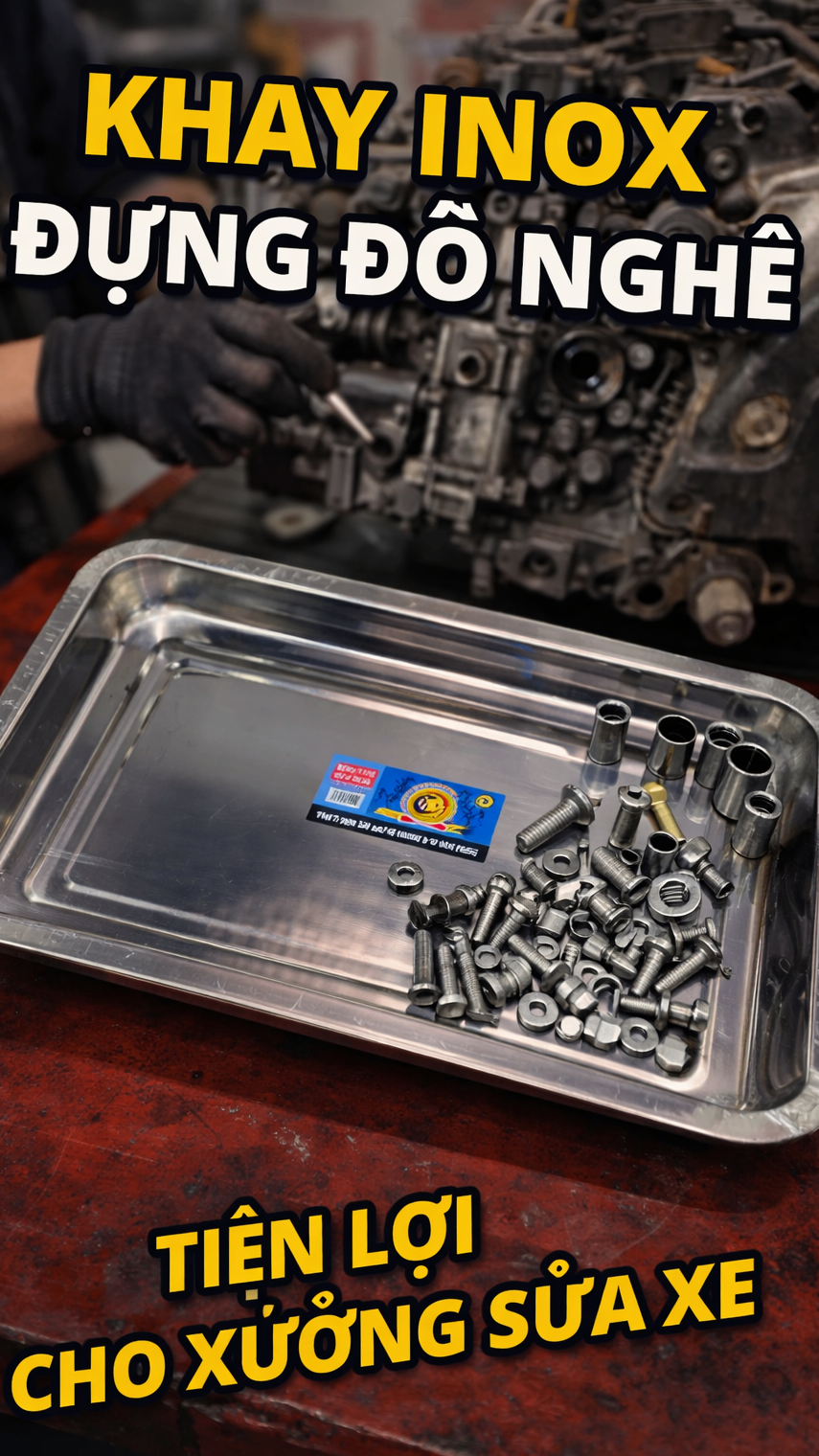 Khay inox đựng đồ nghề là giải pháp tối ưu giúp thợ xe phân loại ốc vít và linh kiện nhanh chóng. Sản phẩm giải quyết triệt để vấn đề thất lạc phụ tùng nhỏ trong quá trình đại tu máy, cực kỳ phù hợp cho các tiệm sửa xe máy và gara ô tô chuyên nghiệp.