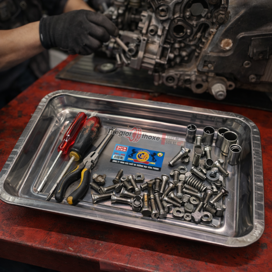Trong quá trình tháo lắp động cơ hoặc hệ thống truyền động, việc rơi mất một con ốc hay long đền nhỏ có thể gây ra những rủi ro kỹ thuật nghiêm trọng. Khay inox đóng vai trò là vật dụng lưu trữ tạm thời, giúp toàn bộ linh kiện của một bộ phận được tập trung tại một nơi duy nhất.