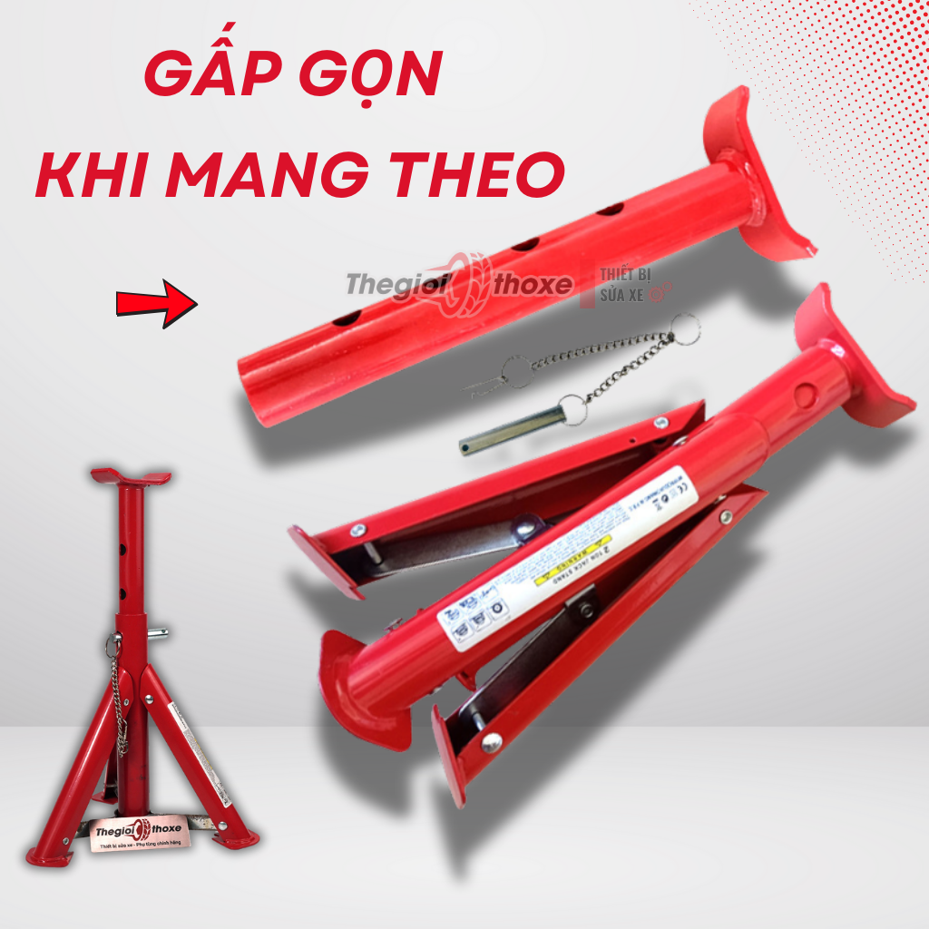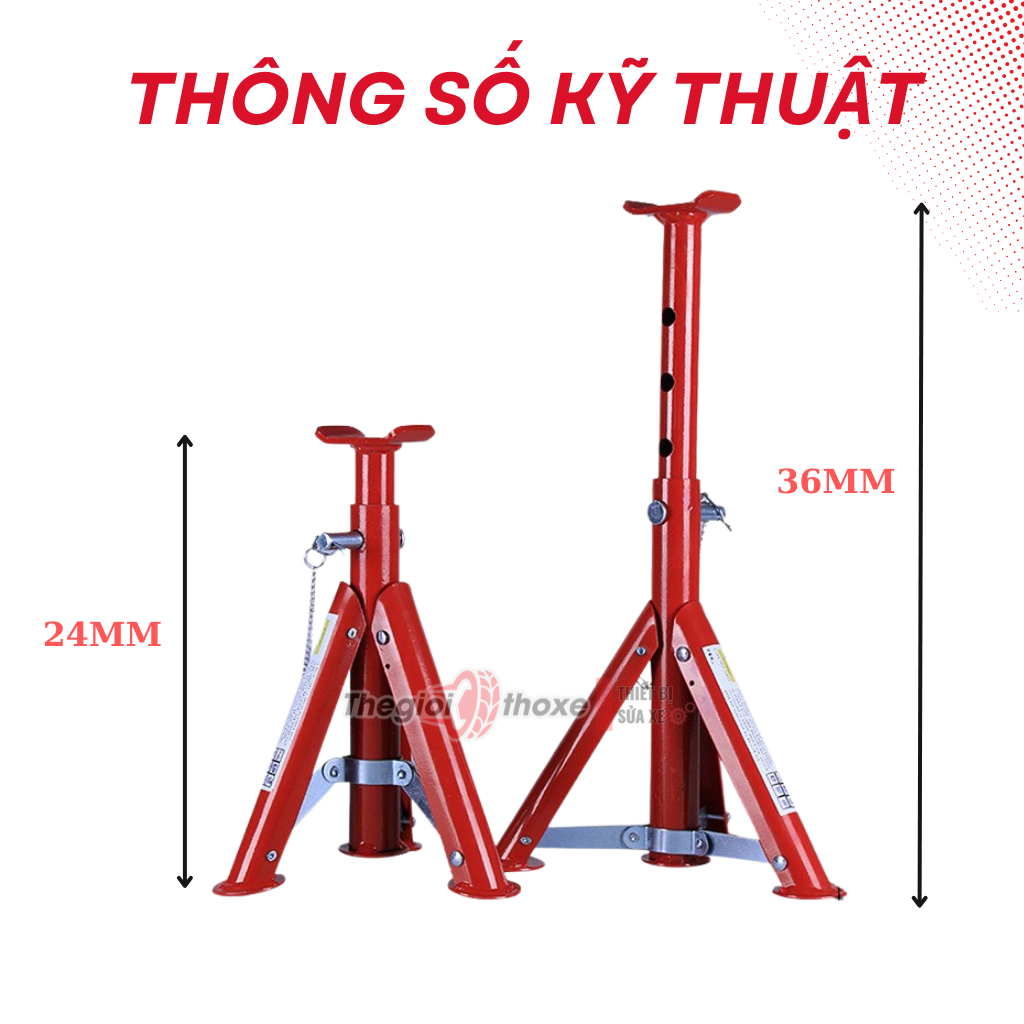 Chiều cao linh hoạt từ 24 cm đến 36 cm giúp sản phẩm không chỉ dùng được cho ô tô mà còn cực kỳ lý tưởng khi kê xe máy để sửa chữa, vệ sinh hoặc bảo trì tại nhà.