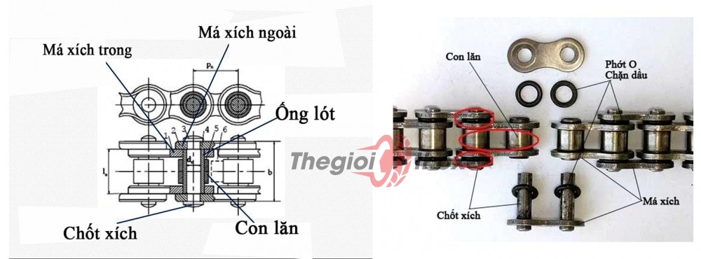 Nhông xích xe máy bao gồm 3 bộ phận chính: