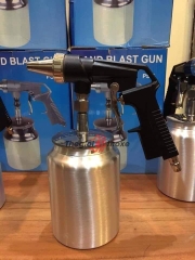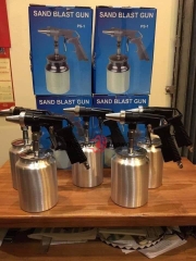 Súng phun cát là loại súng phun cát cầm tay sử dụng bình khí nén giúp đẩy cát với áp lực cao nhằm đánh tan gỉ sét trên bề mặt vật liệu một cách nhanh chóng, kể cả những góc cạnh, khe rãnh mà bình thường ko để đưa máy chà nhám vào được.