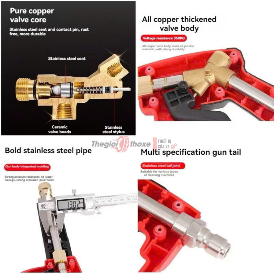 - Kết nối phổ thông: Gắn được nhiều loại máy rửa xe