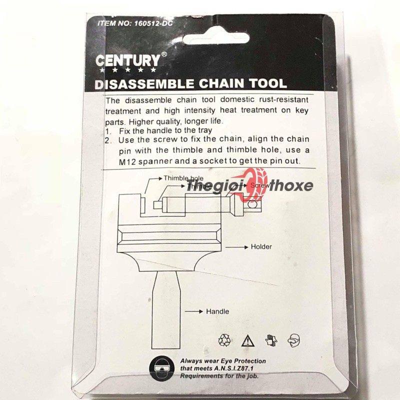 Vam đột xích xe máy Century 160512-DC là dụng cụ chuyên dụng để tháo lắp sên (xích) xe máy, phục vụ công việc sửa chữa được hiệu quả và nhanh chóng.