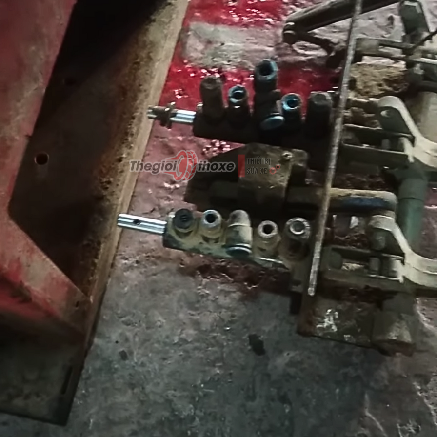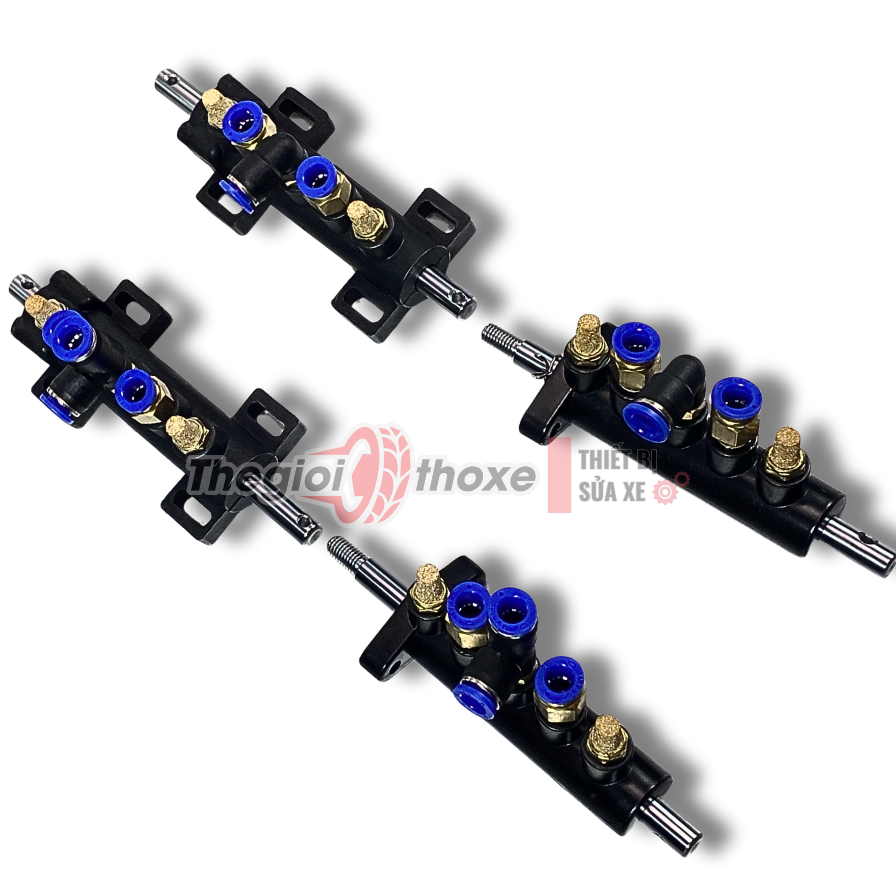 Van chia hơi đóng vai trò là bộ não điều khiển trung tâm tại cụm bàn đạp của máy ra vào lốp. Công dụng cốt lõi của thiết bị là nhận nguồn khí nén từ máy nén khí, sau đó phân phối chính xác luồng hơi đến các bộ phận như mâm xoay, chấu kẹp hoặc bầu ép lốp thông qua hành động đạp chân của người thợ.