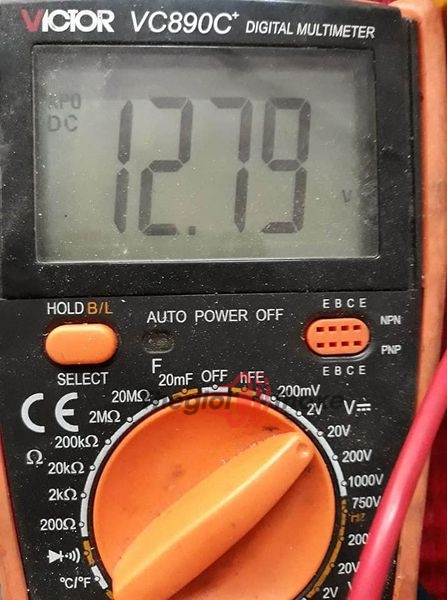 Kiểm tra xe không báo lỗi, ắc quy mới thay nhưng hết điện sạc vào đề nổ bình thường. Tiến hành đo điện áp sạc chỉ được điện áp bình điện như hình bên dưới , xe nổ máy chạy 1 vòng 2km về đo thì điện áp bình điện tụt ( ko sạc vào bình )