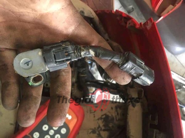 Thợ đã kiểm tra xe và phát hiện ra rằng garanty không đều lúc nhỏ lúc to. Sau đó, nhấc cốp và phát hiện ra dây cảm biến bướm ga đã gãy.